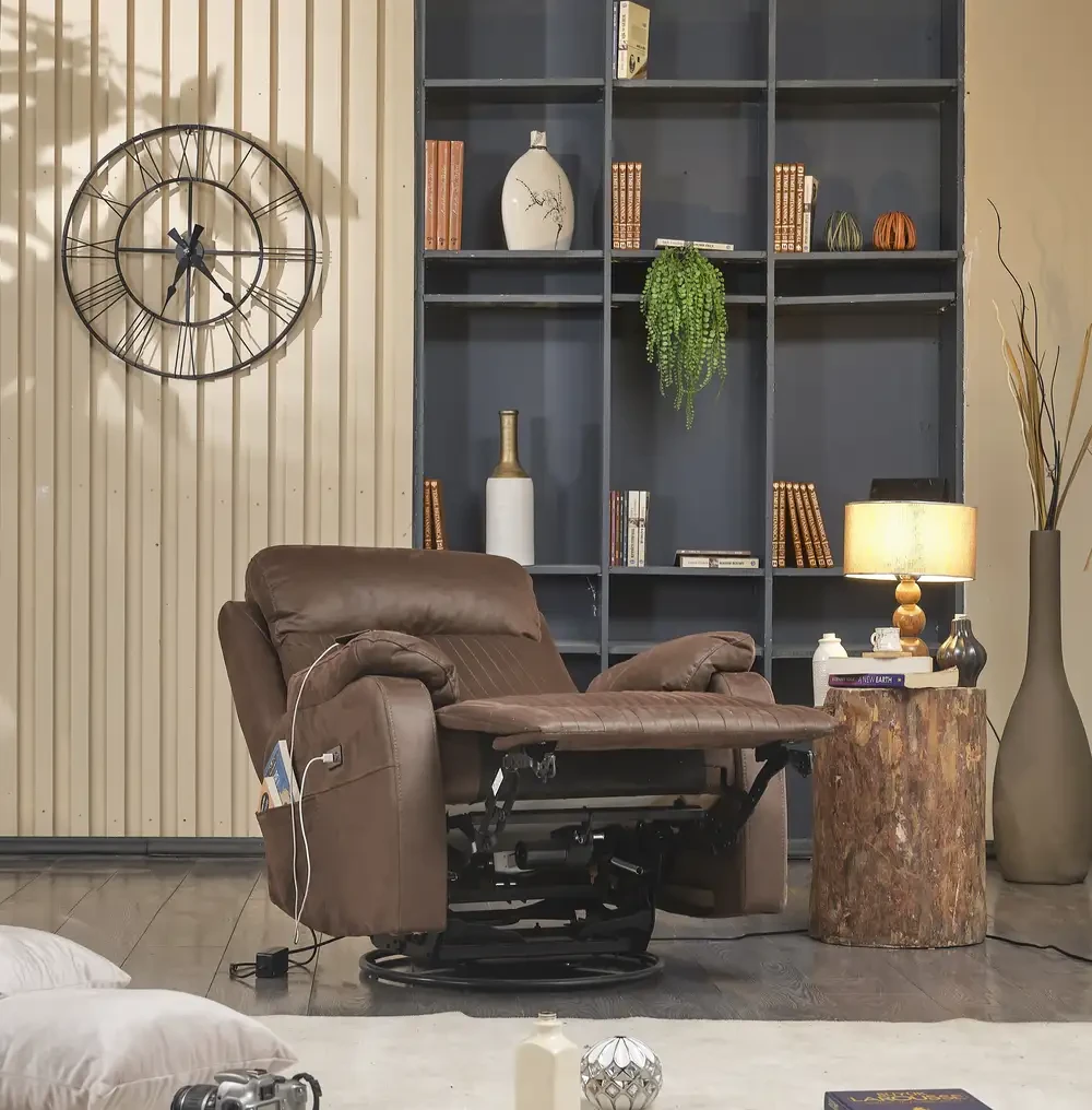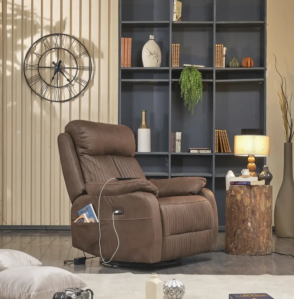 4 Elektrikli ve motorlu sallanan dönen mekanizmalı, şarj type-c fişi girişli, kitaplık ve kumanda cepli sırt ve ayakucunu istediğiniz pozisyon' da kullanmanızı sağlar. Konforunuzu en üst seviyeye çıkarır.